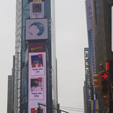 The billboards in Times Square are displaying now “thank you” notes for first responders in the Covid-19 fight